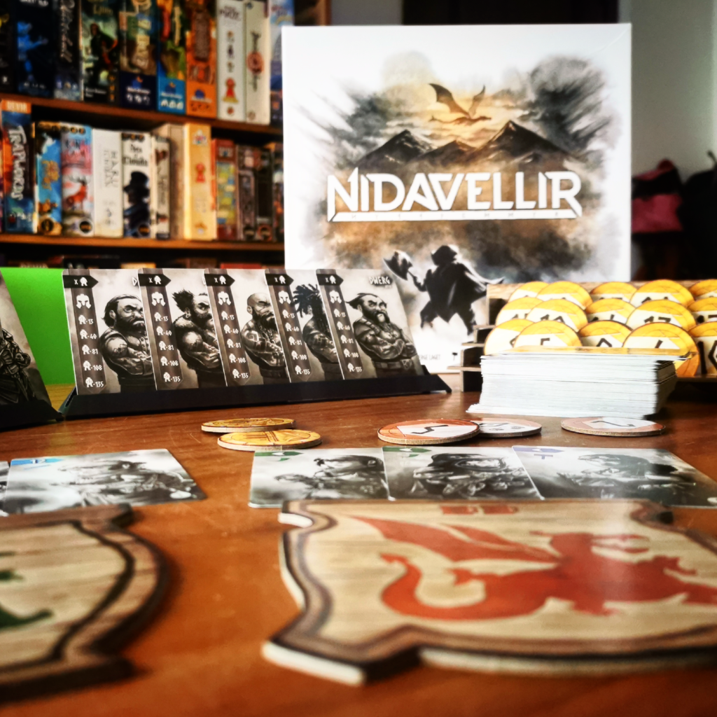 Tengo que admitir que me cuesta encontrar la razón por la que este juego resulta tan fascinante. Si bien el sistema de mejora de monedas es ingenioso, siendo francos no hay nada particularmente innovador en el funcionamiento de este juego. Subastas y armado de colecciones están presentes desde hace mucho tiempo. Te puedo asegurar sin embargo que Nidavellir es mucho más que la suma de sus partes. Por un lado es lo suficientemente simple para explicarlo y jugar un partido como mucho en 45 minutos. Por otro lado, el abanico de posibilidades que ofrecen los héroes y las distintas formas de puntuar de cada gremio te dan ganas de explorar montones de caminos posibles para alcanzar la victoria. La competencia en las subastas es feroz pero amistosa y siempre hay que tener un ojo en lo que hace el resto de los jugadores. Muchas veces será necesario tomar una carta que no te resulte tan útil con tal de no dar ventaja al rival. Aun así, es imposible saber a ciencia cierta quién está ganando, ya que los puntajes son muy elevados y es muy difícil sacar las cuentas durante el transcurso del partido. Muchas veces parece que los juegos más complejos, grandilocuentes y novedosos siempre son los que se llevan las palmas y reconocimiento de los expertos. Nidavellir llega para mostrar que no es necesaria una gran producción, la última novedad y un presupuesto abultado. Al fin y al cabo lo que importa es la diversión. Por favor no te quedes sin probarlo, es el mejor juego que probé en lo que va de este año.