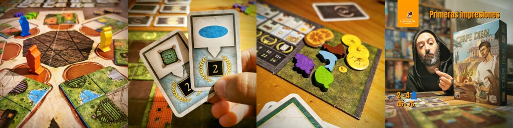 Carpe Diem es de esos juegos en donde no vale la pena meterse en una introducción hablando de la temática. No sabría qué decir. Estamos en la antigua Roma, hay recursos y terrenos… Si eso no los engancha no los culpo, pero te recomiendo leer la reseña completa. Podrías llevarte una sorpresa