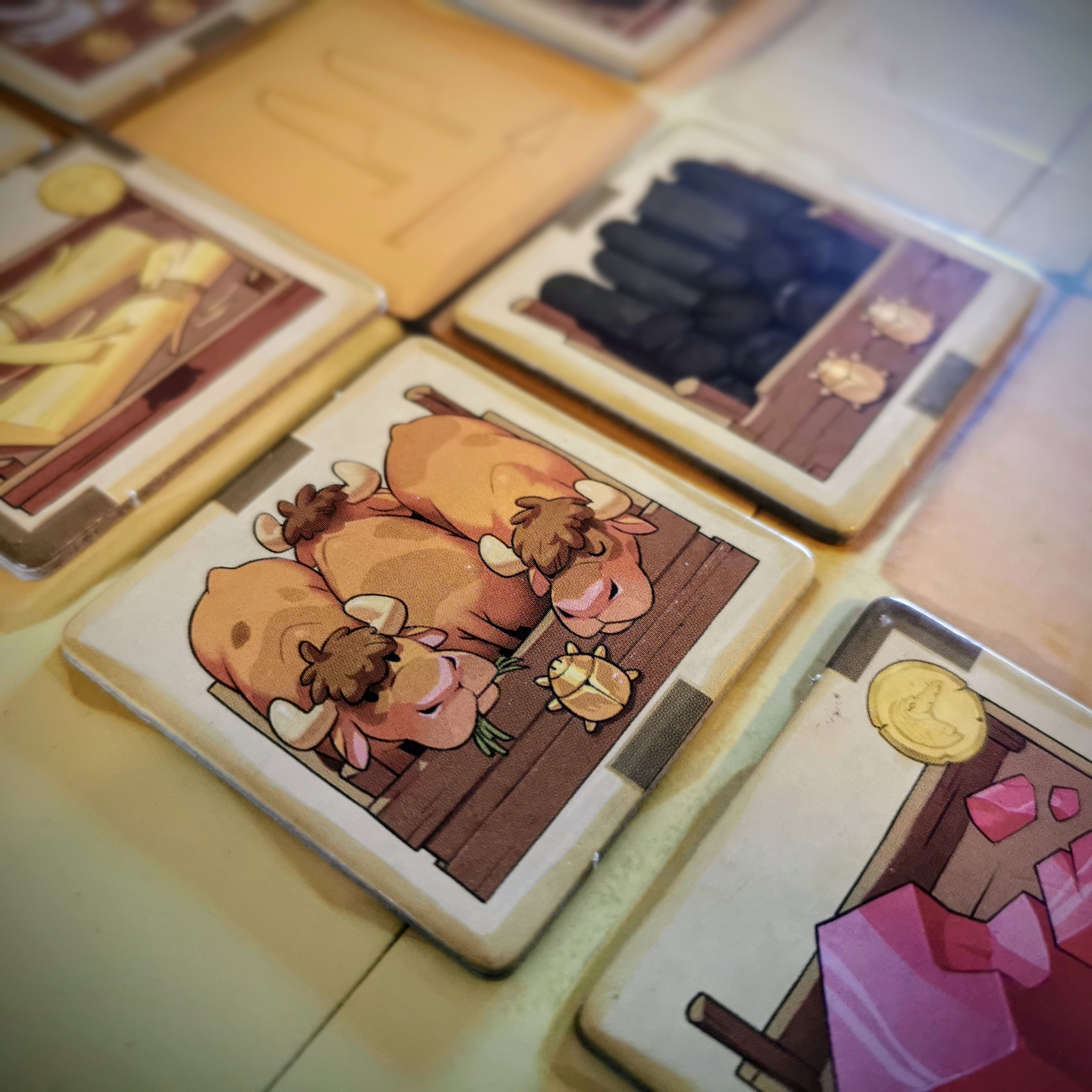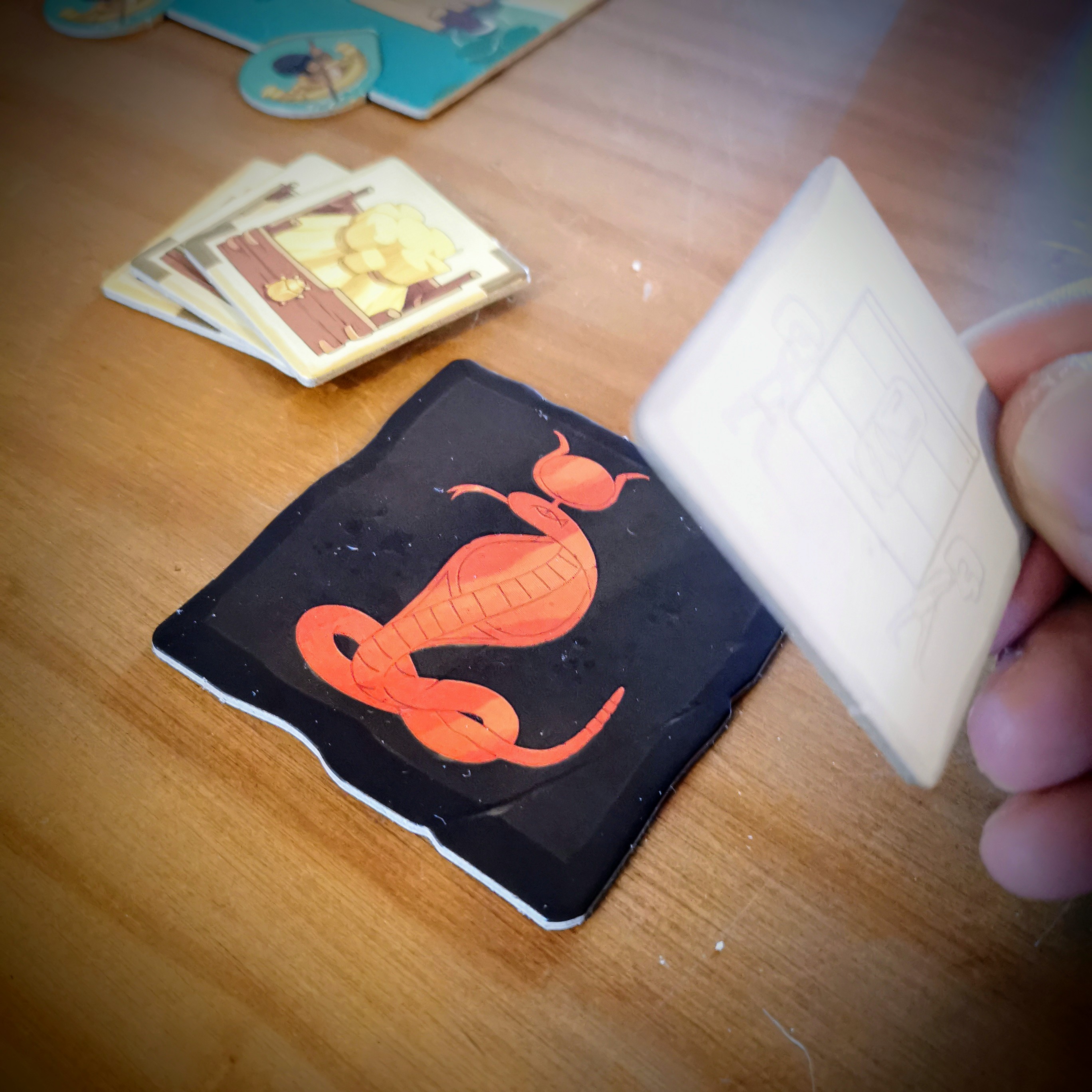 Jugar las losetas de personaje es la tercera y última alternativa de acción en el turno. Estas están boca abajo y la incertidumbre mantiene la tensión por sus efectos inesperados y maliciosos.