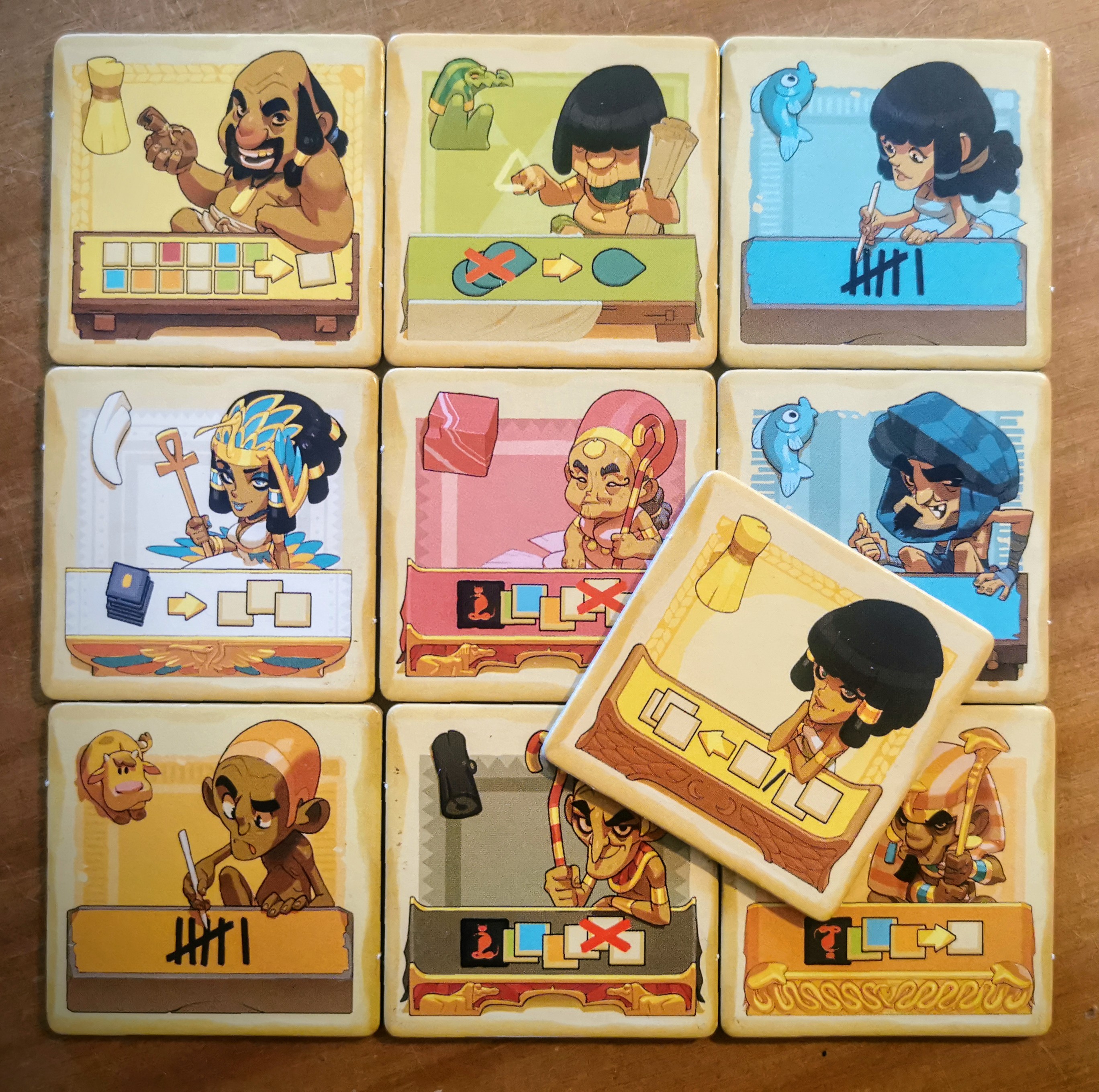 Sobek: 2 Jugadores es un remix de varios elementos clásicos de estos autores franceses con elementos de La Mano del Rey, Kingdomino y Jaipur. Mi parte favorita es cómo se recogen las losetas, ya que cada movimiento influye en las opciones del oponente. Además, las losetas de personajes rompen con la rigidez típica de los juegos abstractos y aportando personalidad.