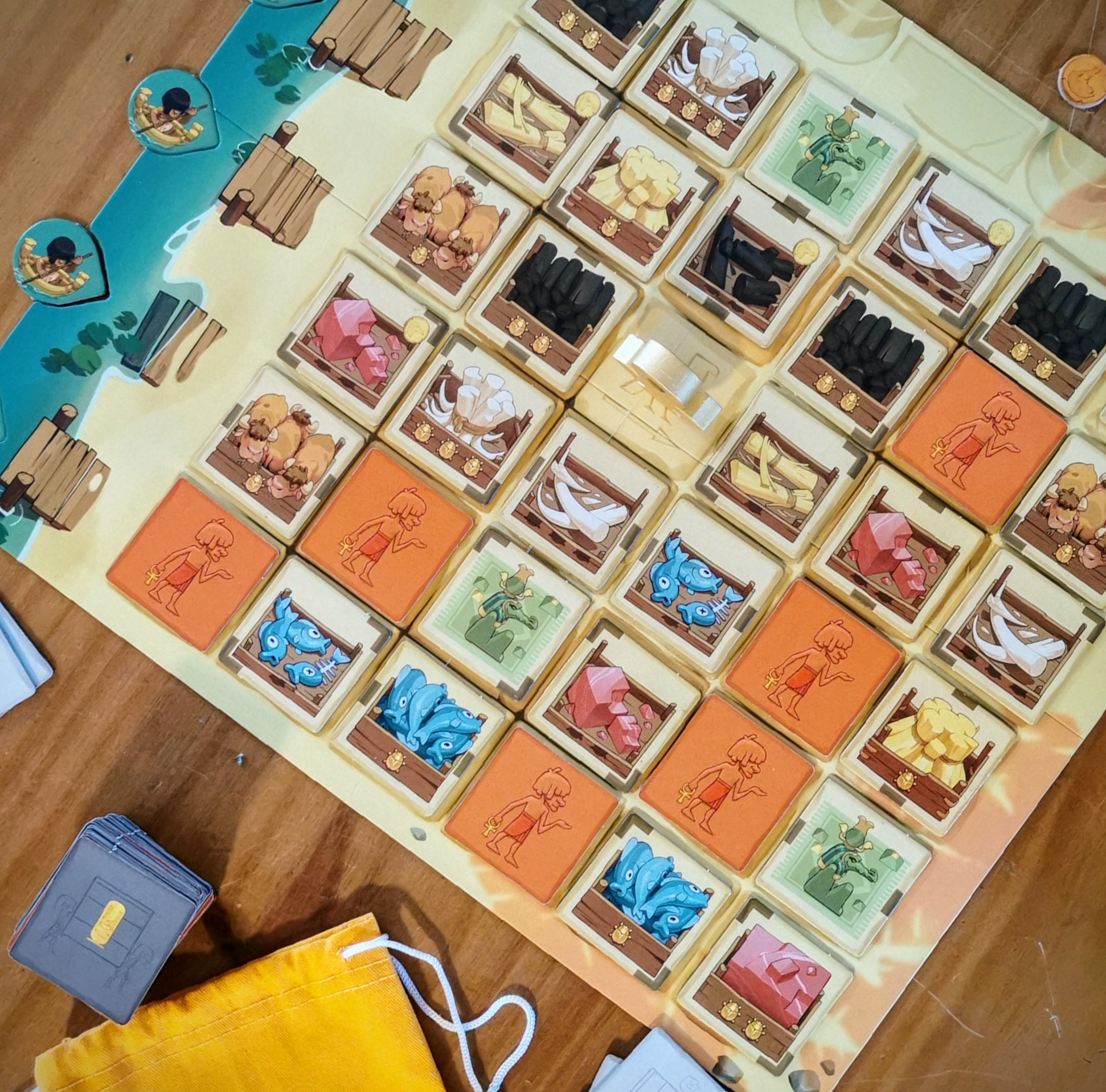 El juego gira en torno a una grilla de 6×6 llena de losetas que contienen productos de 6 tipos diferentes (algunos con valiosos escarabajos dorados) o personajes con habilidades especiales. Los jugadores alternan turnos para recoger losetas, y la dirección de la que se tomará la siguiente está determinada por la última que fue recogida. Cada decisión influye en el siguiente movimiento.