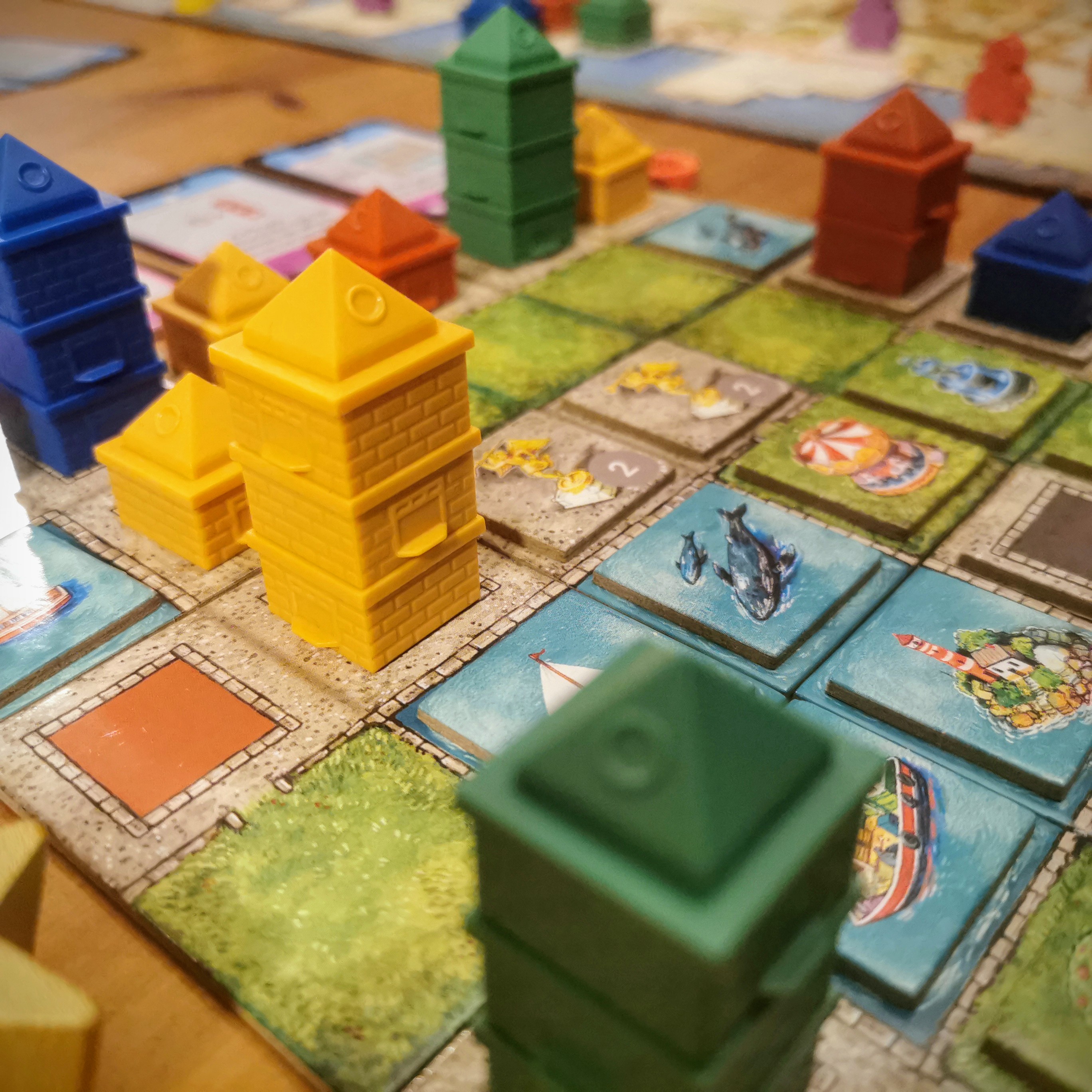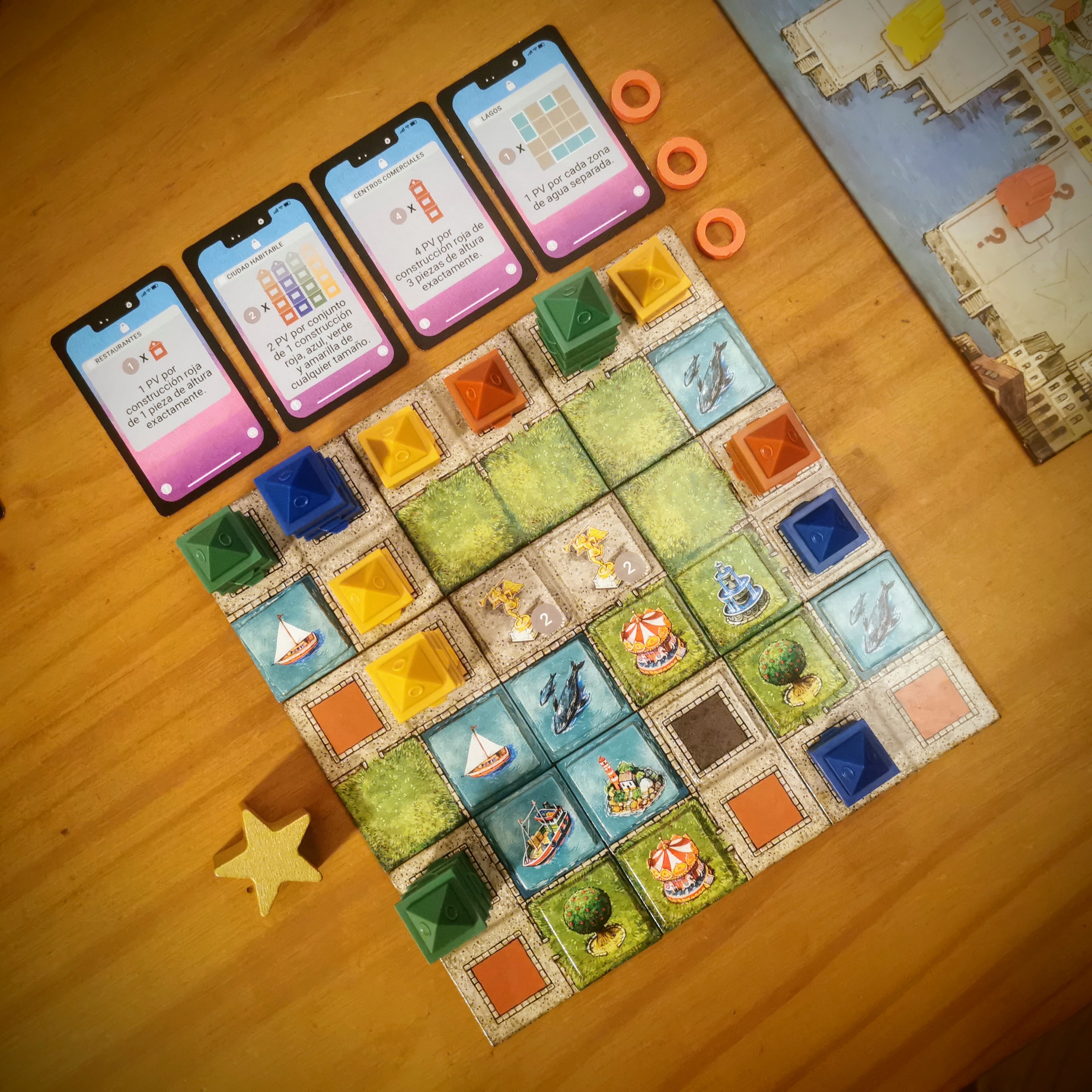 Este juego es un excelente ejemplo de lo que llamo un «embajador del hobby». Es accesible en reglas y conceptos para que un público amplio lo interiorice, pero también ofrece decisiones interesantes. Además, logra un equilibrio entre momentos reflexivos, dedicados a la construcción de un puzzle personal, y otros más tensos, marcados por la competencia por los objetivos comunes y las piezas más valiosas del tablero. Este ultimo aspecto se diluye un poco jugando a dos, a menos que uses la variante de ciudad extendida que viene sugerida para tal fin.