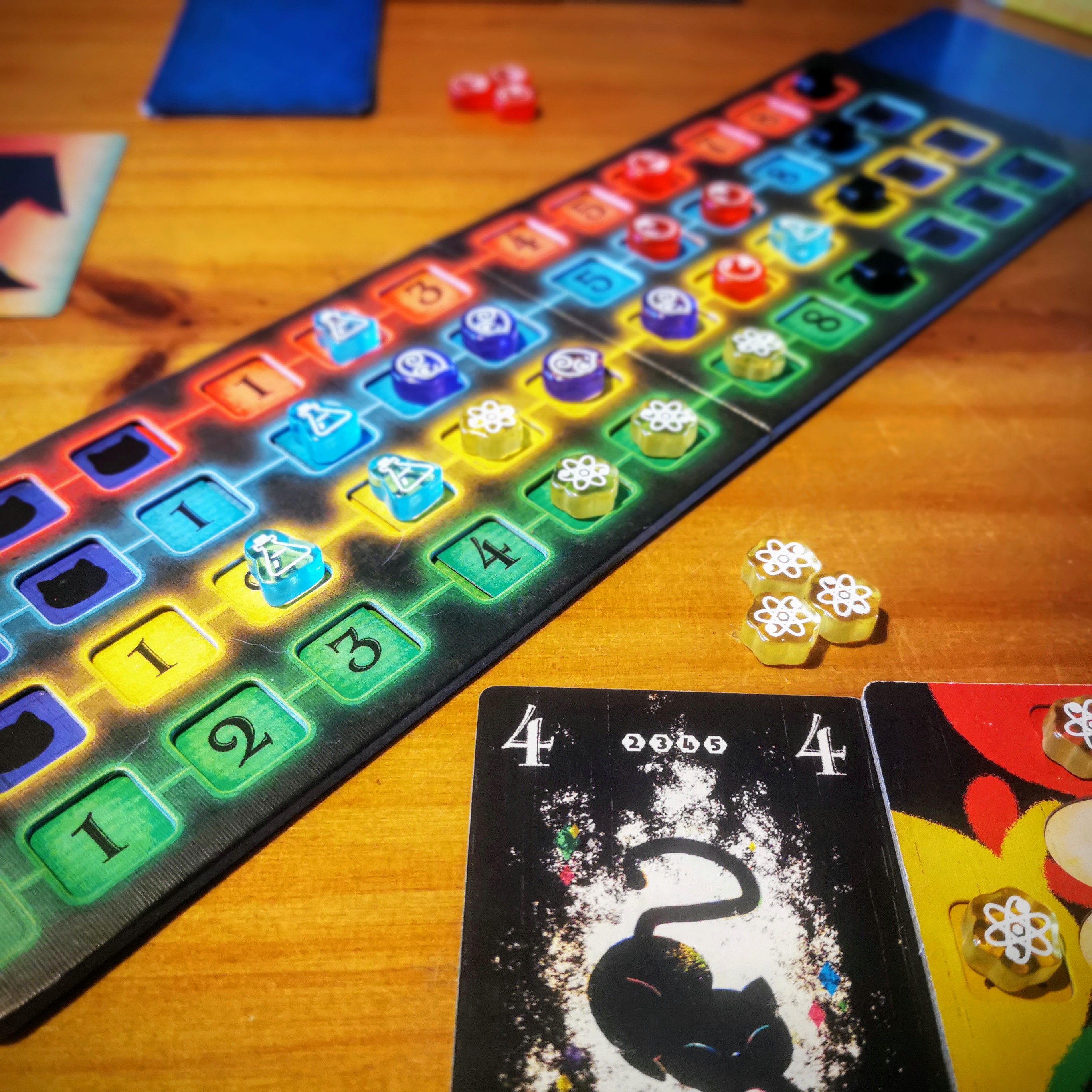 No soy muy fan de los juegos de bazas y por eso mi aproximación a Cat in the Box fue cautelosa, pero debo admitir que quedé cautivado al finalizar mi primera partida. El experimento teórico del gato de Schrodinger queda perfectamente plasmado aquí y da un vuelco al género sin corromper la esencia. Mucho hay de leer a los jugadores y mucho más aún de calcular las cartas en juego, pero también hay gambeta y apuesta como en todo gran juego de cartas. No solo pasó a ser mi favorito de bazas (que no era mucho decir) sino que lo considero un juego redondo que podría colarse entre mis favoritos de este año.