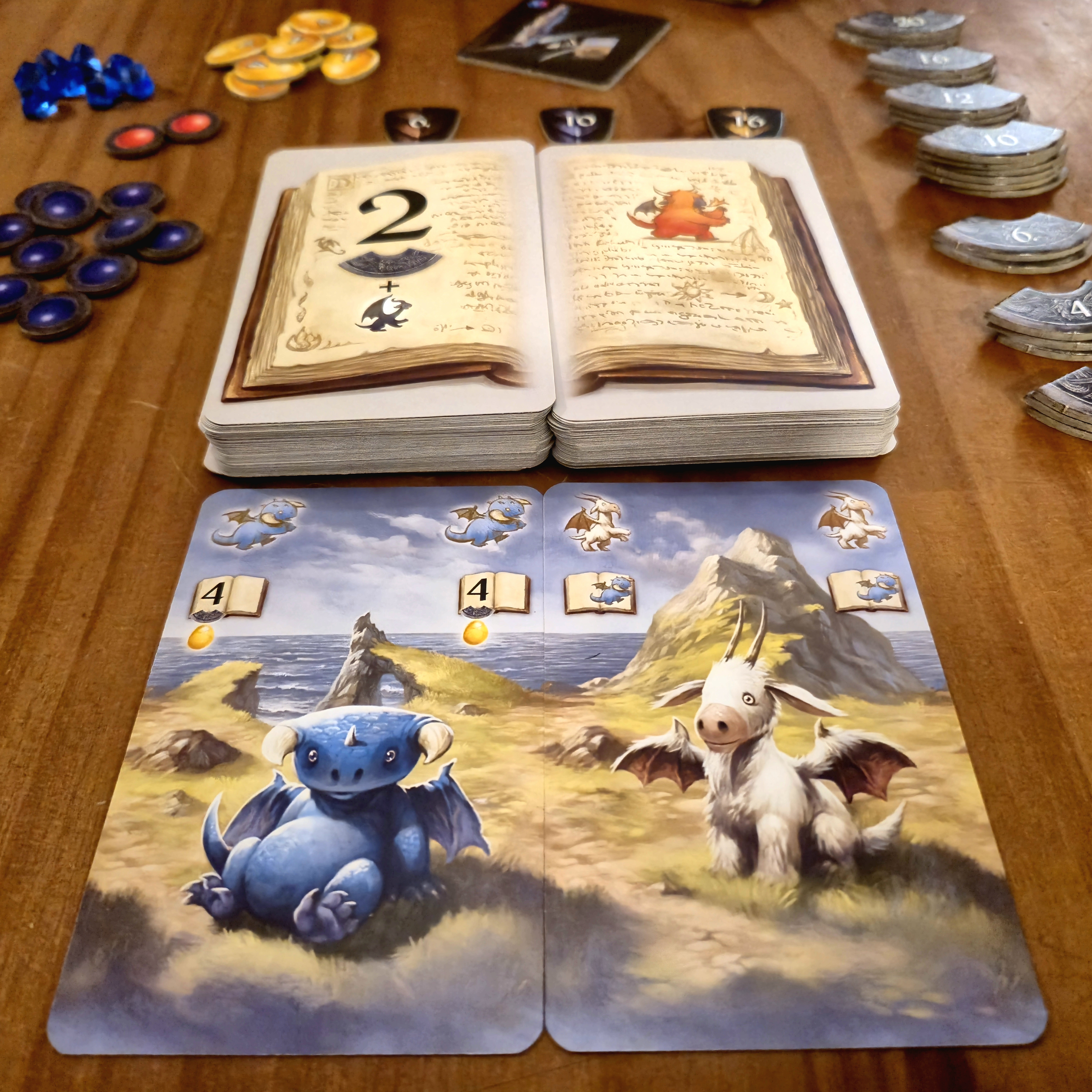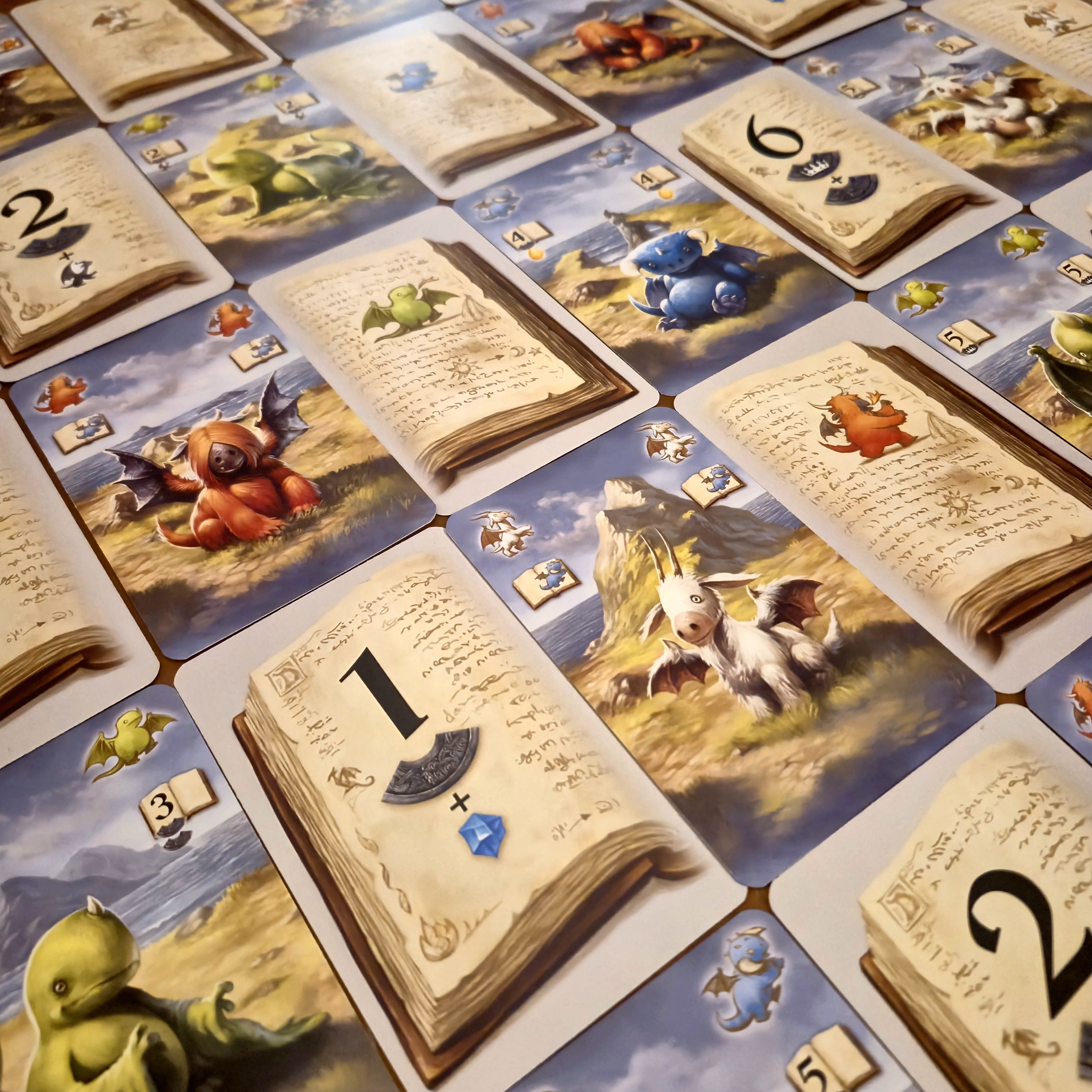 Los jugadores en su turno pueden robar entre 1 y 3 cartas de dragón con el fin de armar sets. El número y color del set que se puede jugar está dictaminado por el libro mágico que conforman los reversos de los dos mazos de donde salen los dragones, o sea que a la vez que se roban cartas los reverso van cambiando. Esto agrega una sutil pero especiada porción de “presionar la suerte”. Luego puede bajar el set, pero antes puede devolver cartas de su mando al libro para alterar el número y/o el color.
