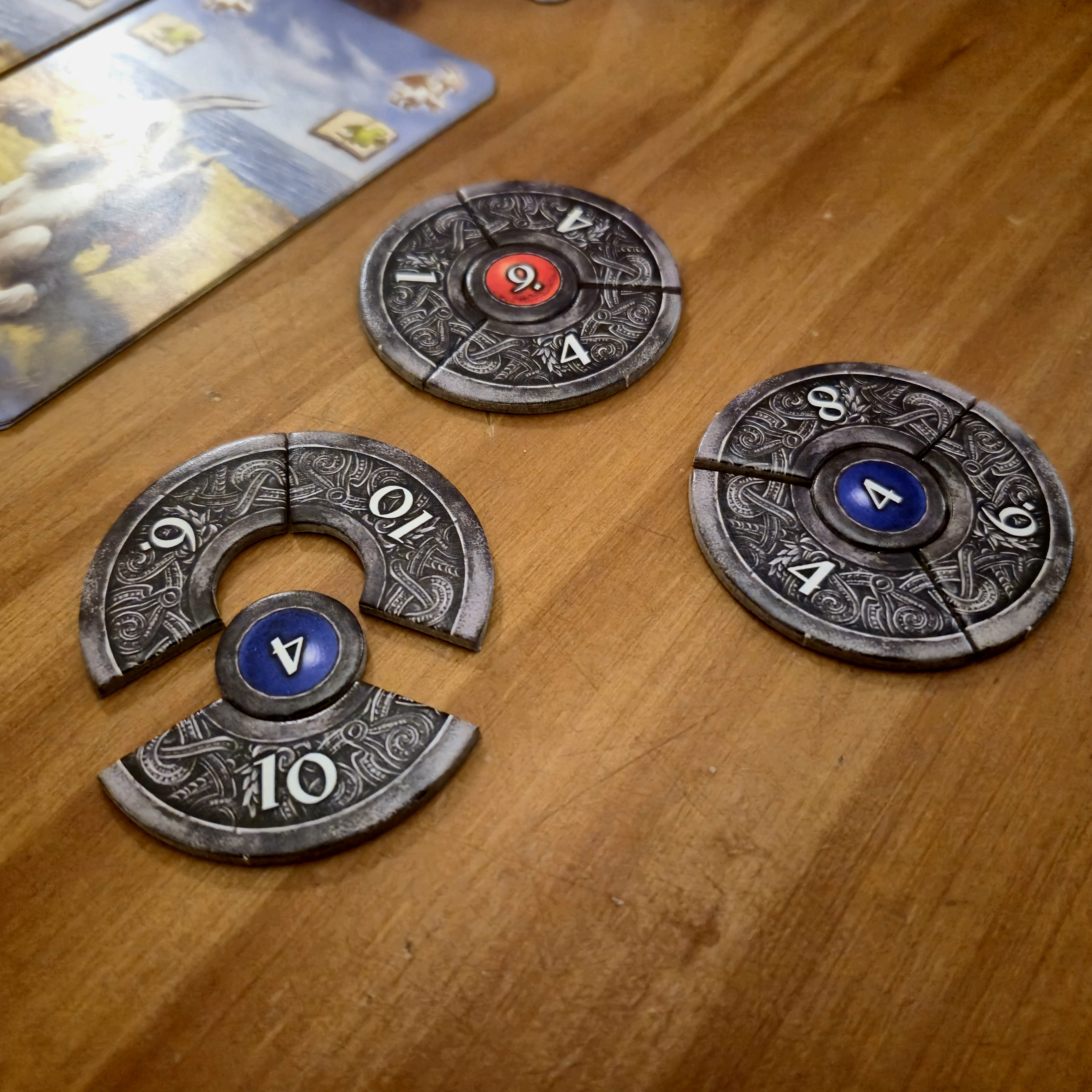 El resto de los jugadores deben permanecer atentos ya que también pueden jugar un set con las características que quedaron. Con cada set se obtiene un pedazo de medallón de una pila de valor creciente en puntos y alguna bonificación, como cartas comodín o huevos de dragón, que depende de la cantidad de cartas jugadas. Con 3 pedazos se arma un medallón completo y cuando entre todos los jugadores se armen un cierto número el juego termina y se cuentan los puntos.