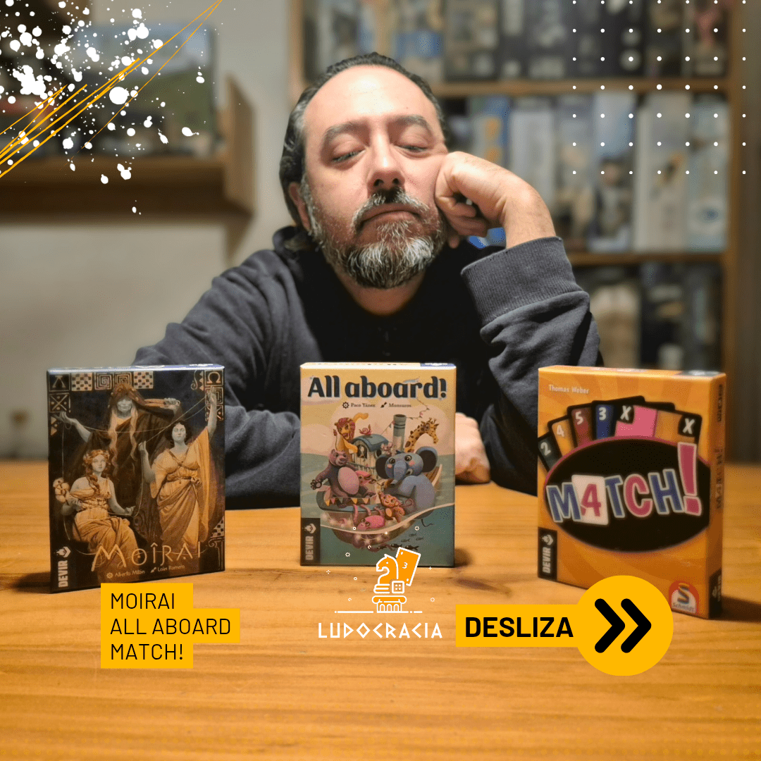 Un astuto juego de cartas en el que cada jugador forma columnas ascendentes con cartas tomadas del mazo o de los descartes. Estas representan vidas, y según las Moiras presentes, sabremos cómo se obtienen los puntos al final: una valora cómo inician, otra cómo se desarrollan, y la tercera cómo cierran. Tiene gran variabilidad, decisiones difíciles y turnos ágiles. ¡Un juego sólido y accesible para muchos perfiles! Me recuerda a Lost Cities, pero más refelxivo… y para más jugadores, claro.