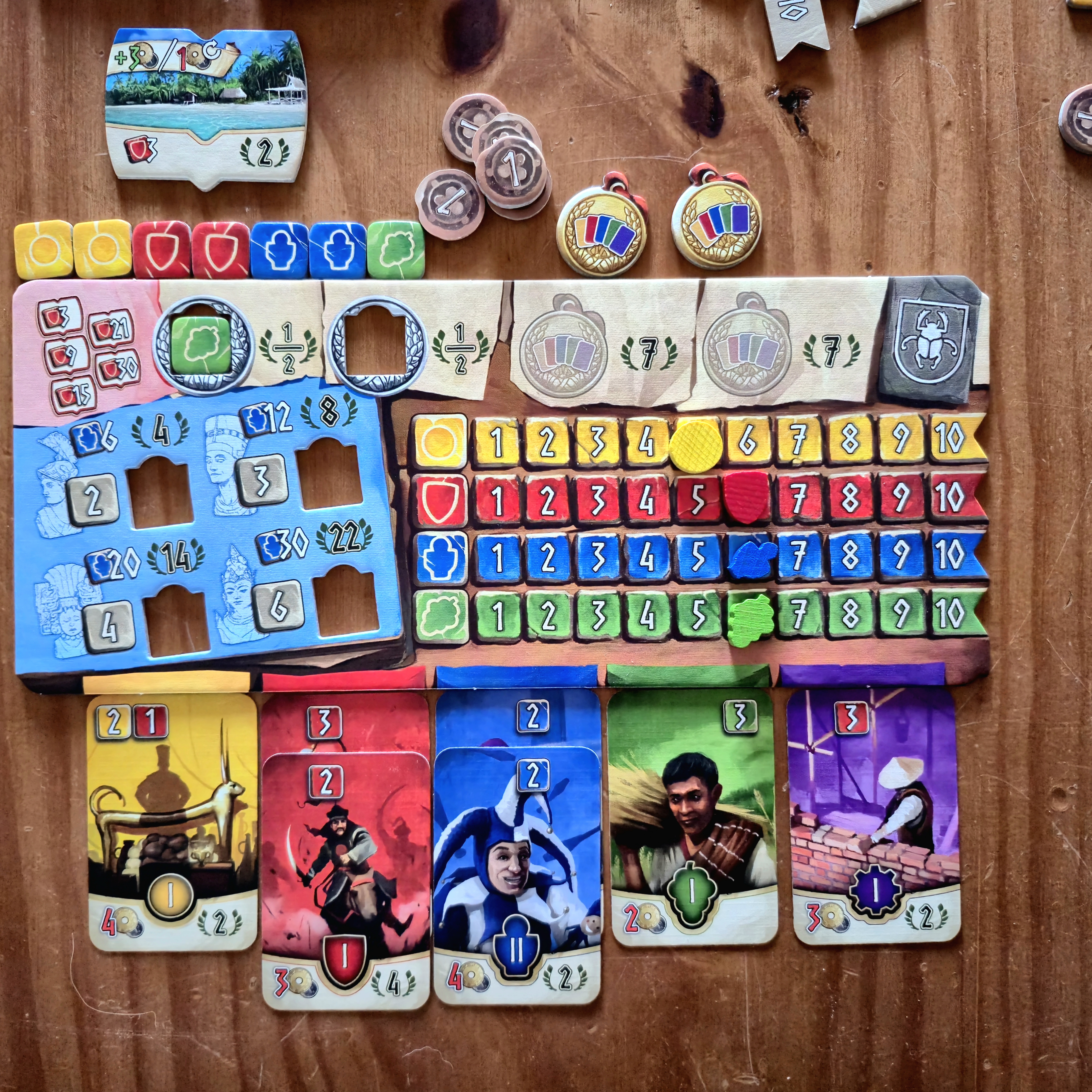 Al final de cada fase obtendremos ingresos, conquistaremos nuevos territorios y levantaremos monumentos dependiendo de los distintos niveles en cada apartado. Además, al final de la era tendremos que sustentar a la población para no perder cartas adquiridas y también podremos comprar medallas para incrementar nuestros puntos finales.