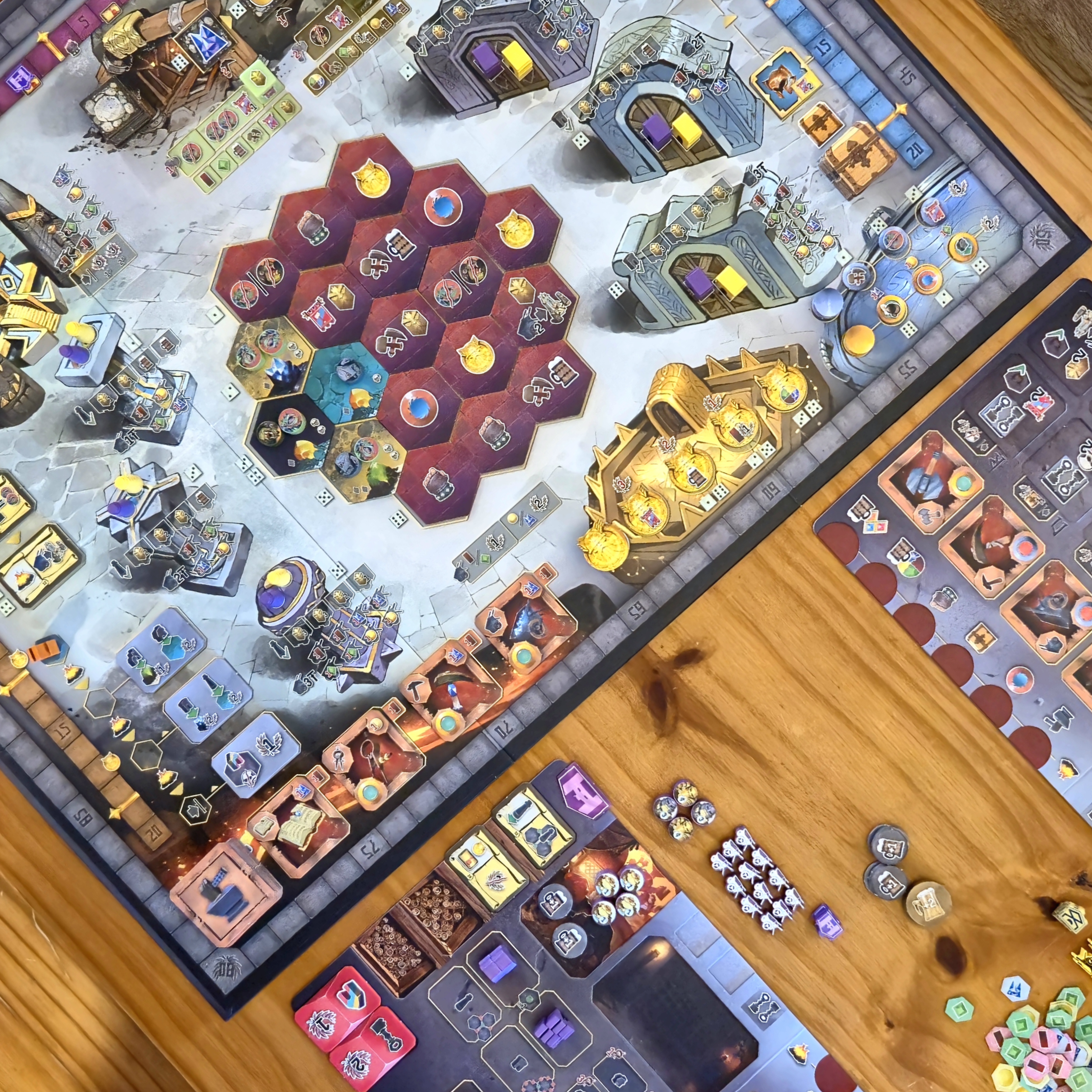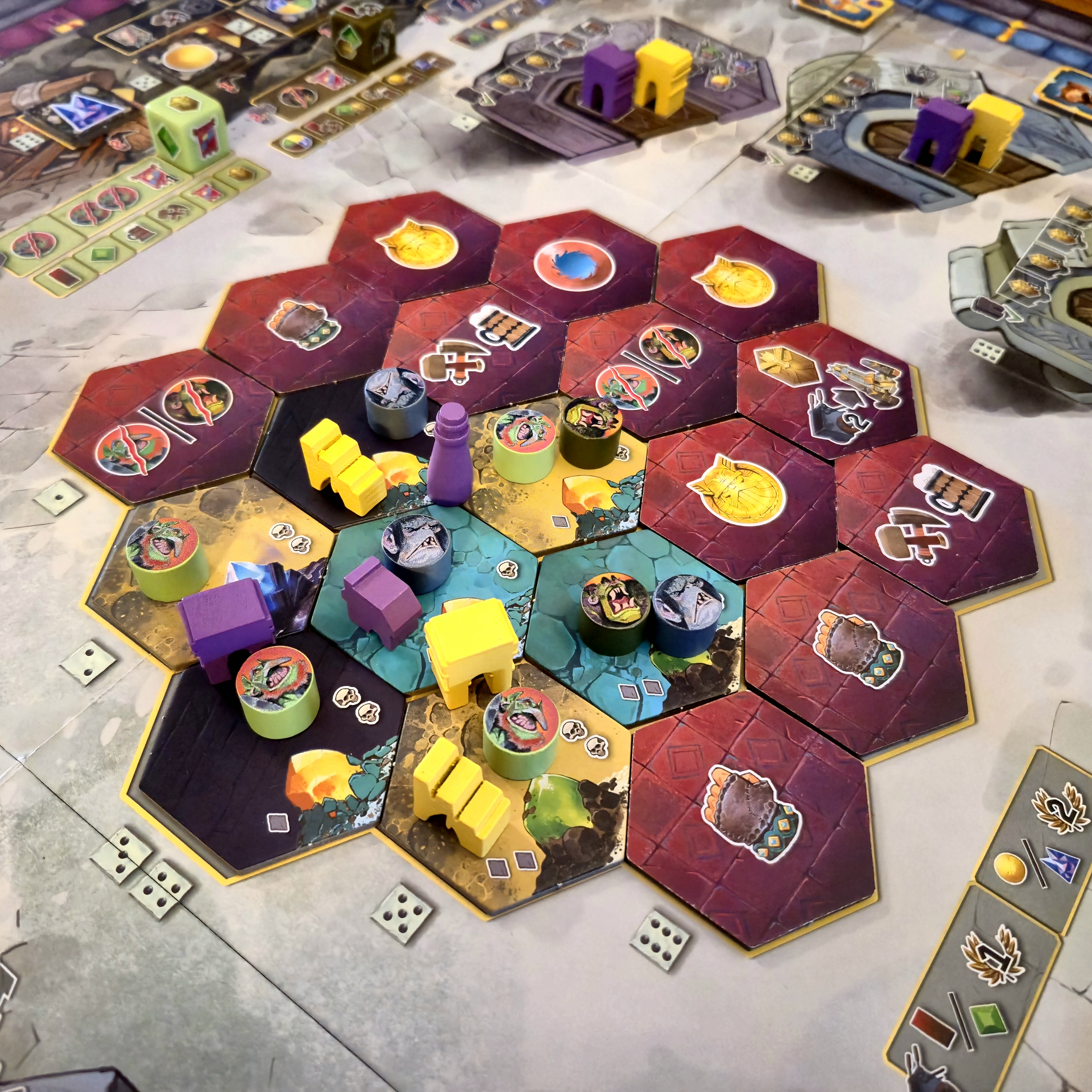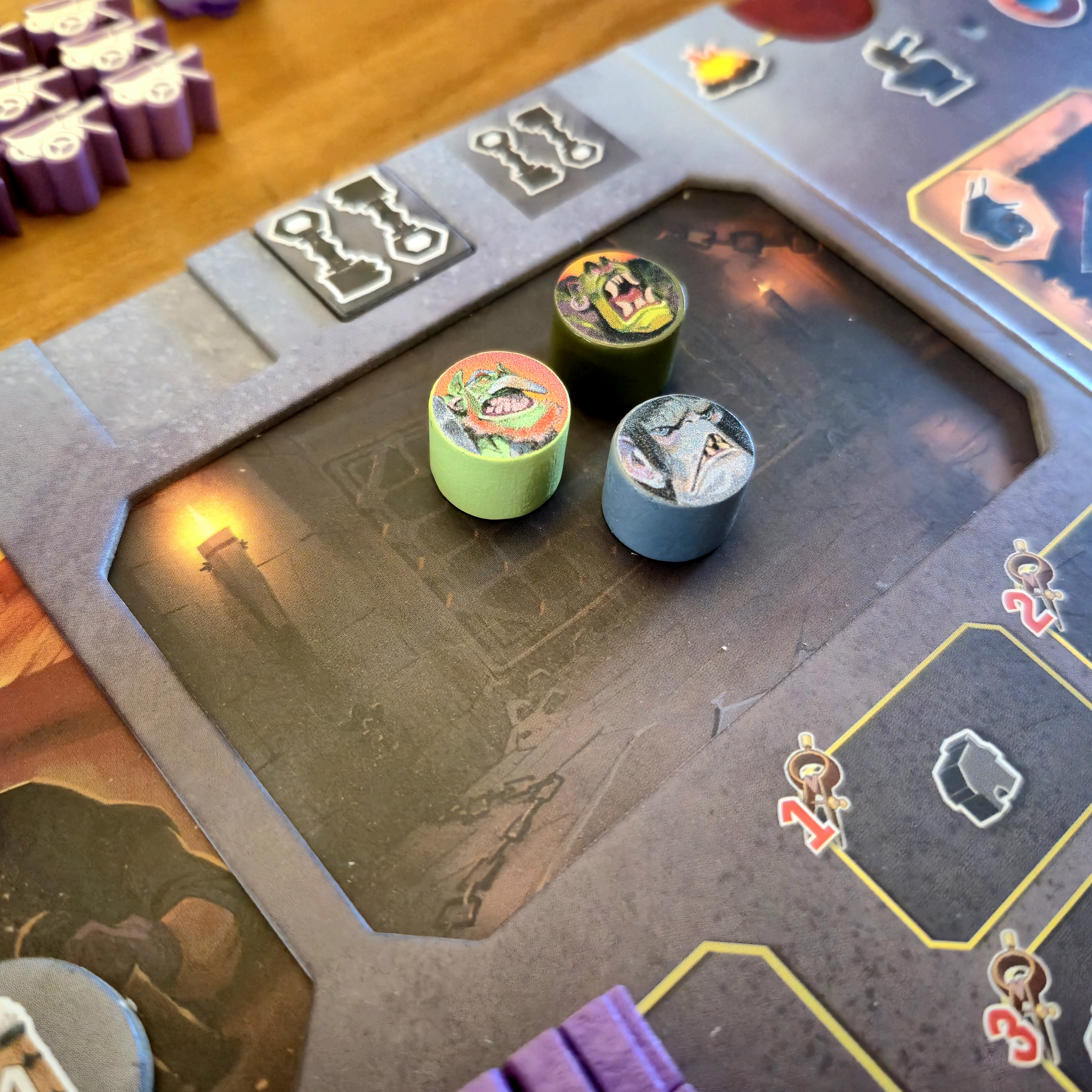 Combatir a las criaturas que se apoderaron de la montaña da beneficios inmediatos y hace progresar en el track de prestigio, aumentando la fuerza de los enanos.