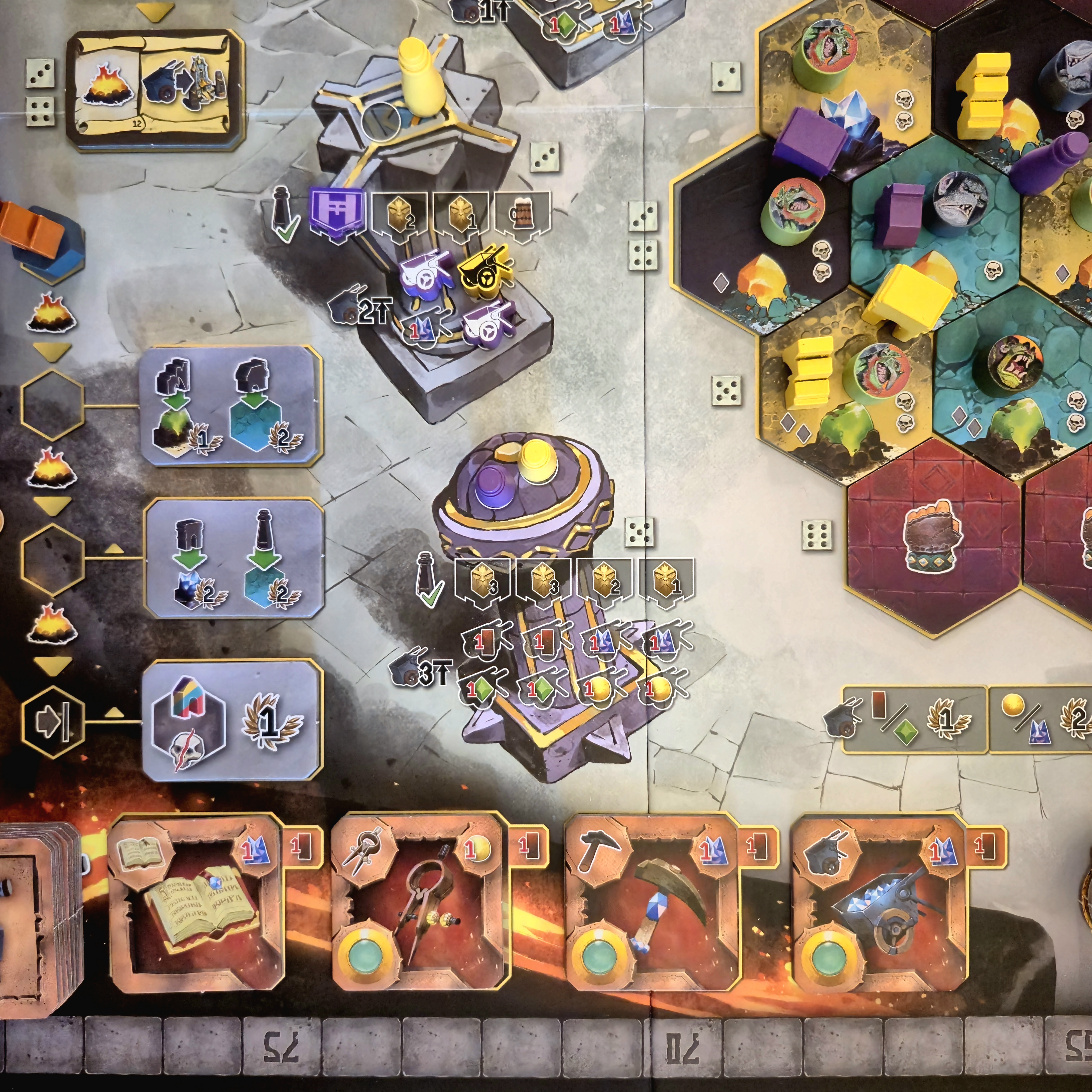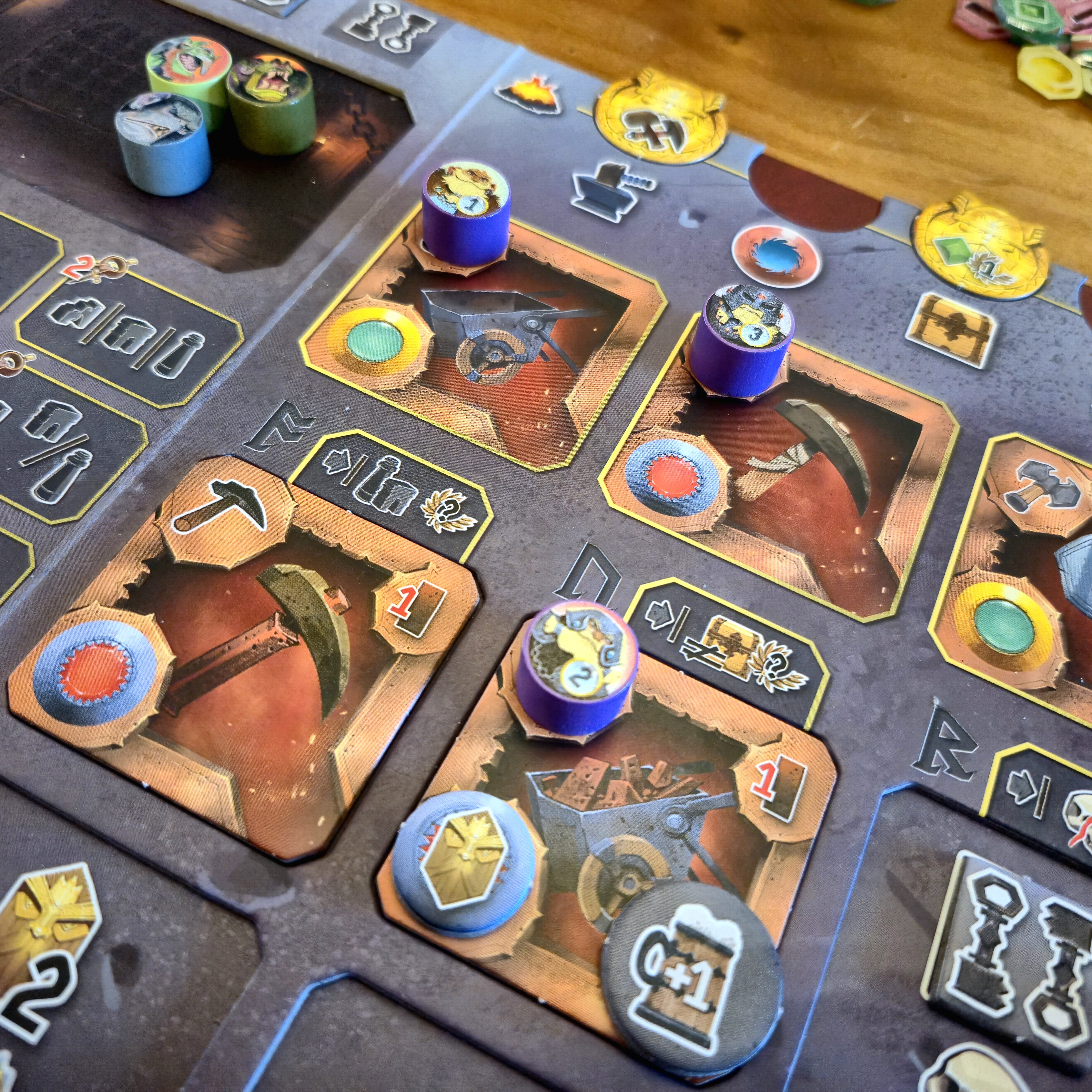 Al comienzo, cada jugador cuenta con una única herramienta de cada tipo, por lo que no hay muchos caminos para diversificar. Si se quiere especializar, deberá forjar nuevas herramientas, que además desbloquean nuevas formas de puntuación al final de la partida.