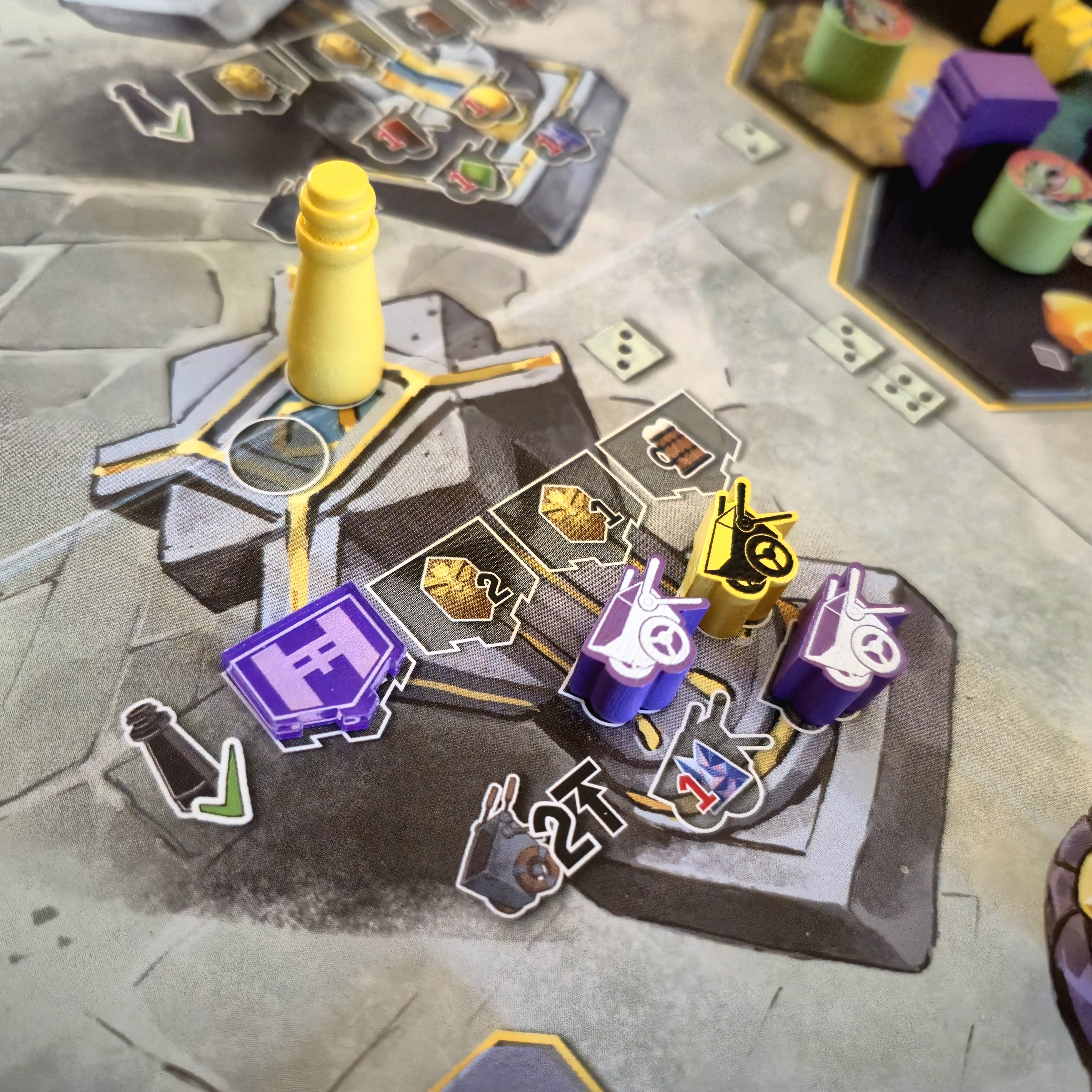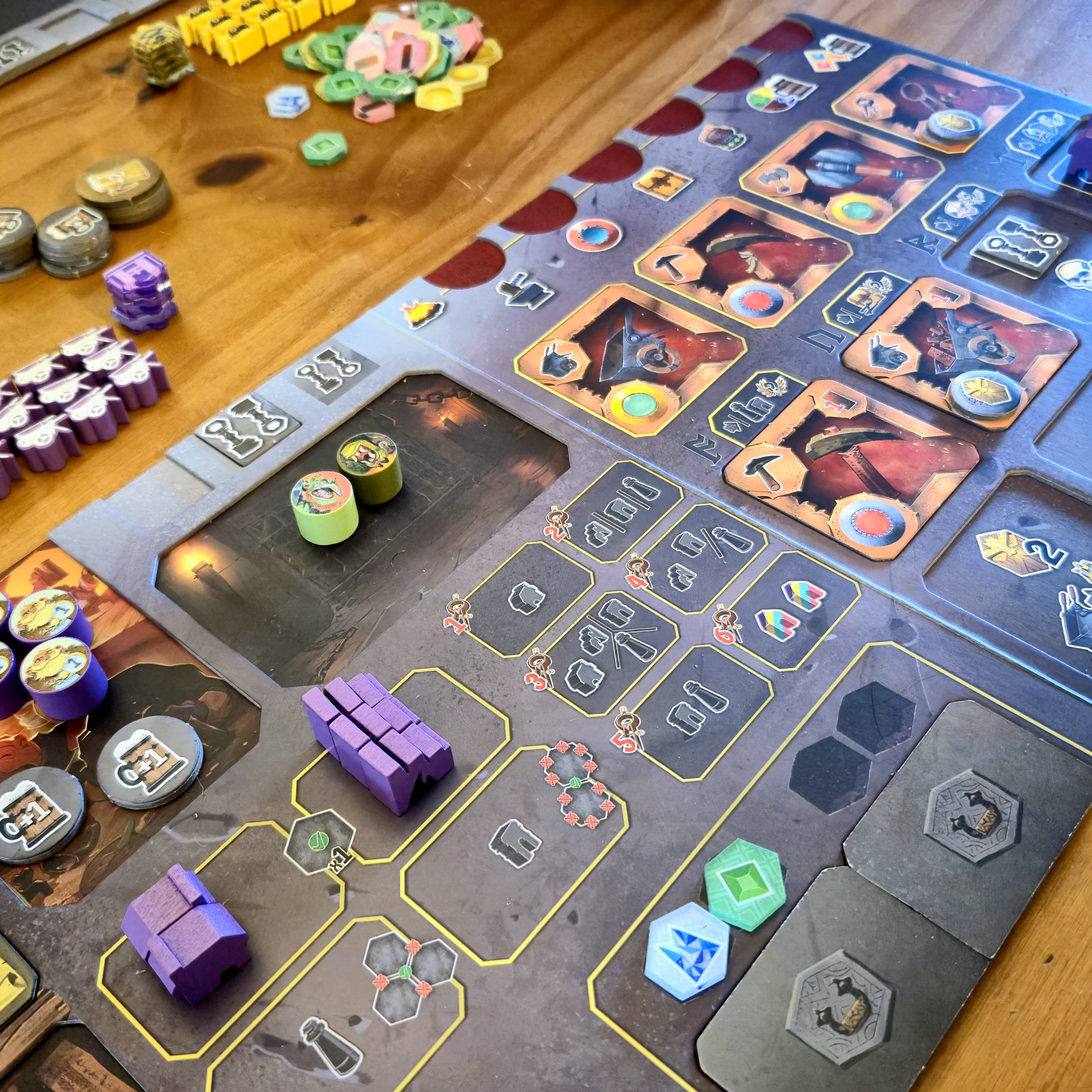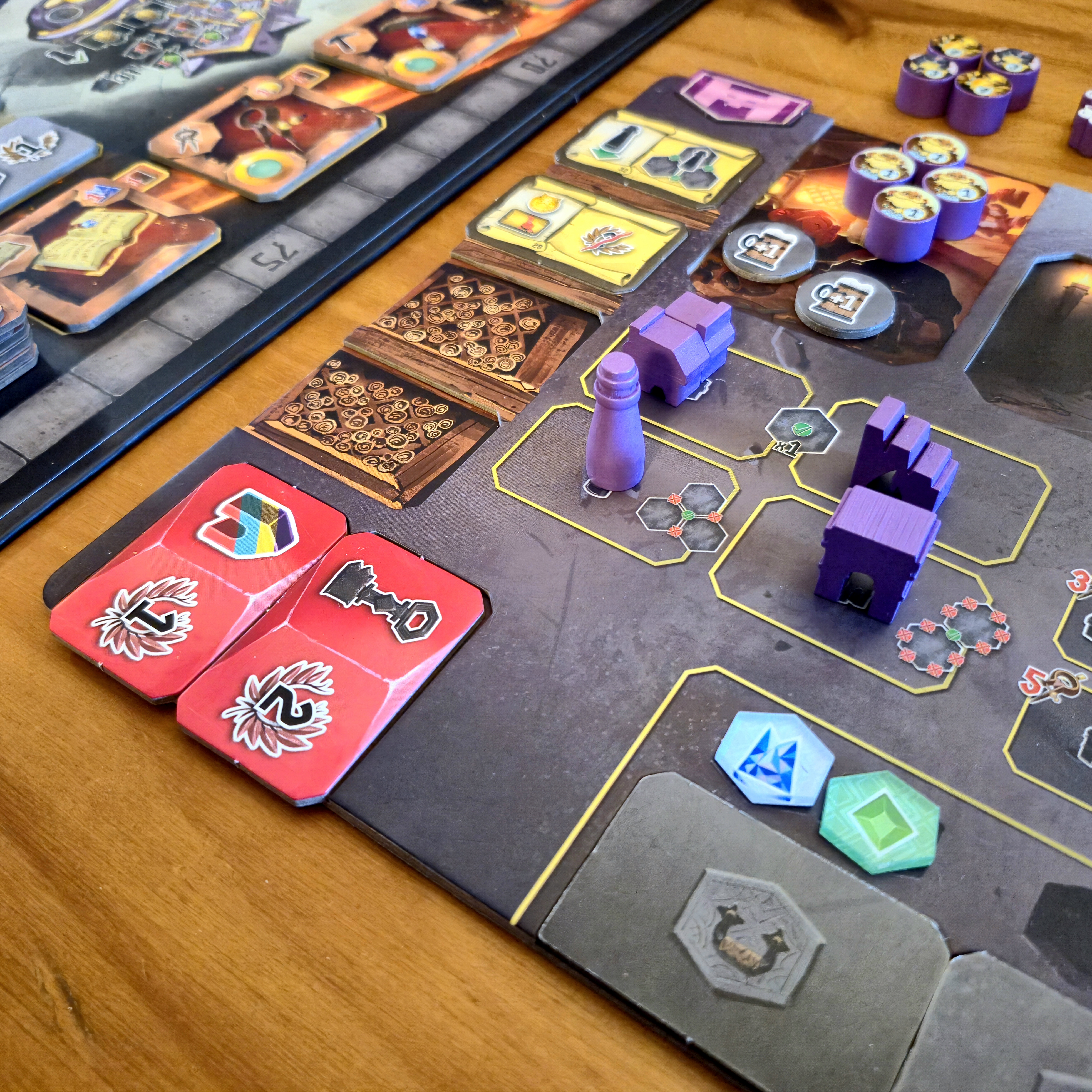 Cavar nos da recursos, revela nuevas áreas del tablero central con enemigos y nos hace avanzar en el track de minería para obtener reliquias.