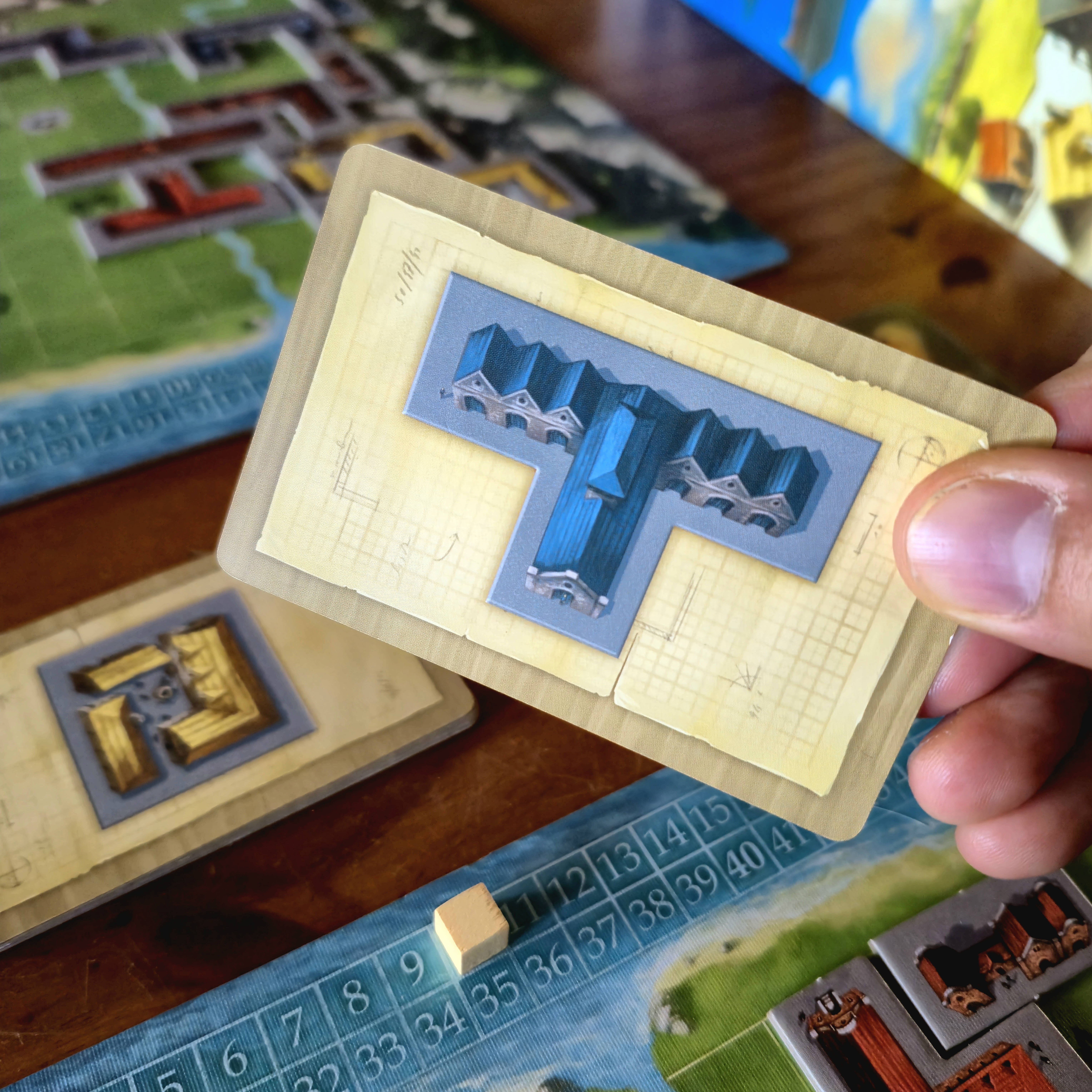 Ya en la tercera partida se agrega una regla que definirá el juego: se ganan puntos por el grupo de edificios más grande de cada color. La partida termina al revelarse la última carta del mazo, o si los jugadores deciden finalizar antes por no poder colocar más piezas.