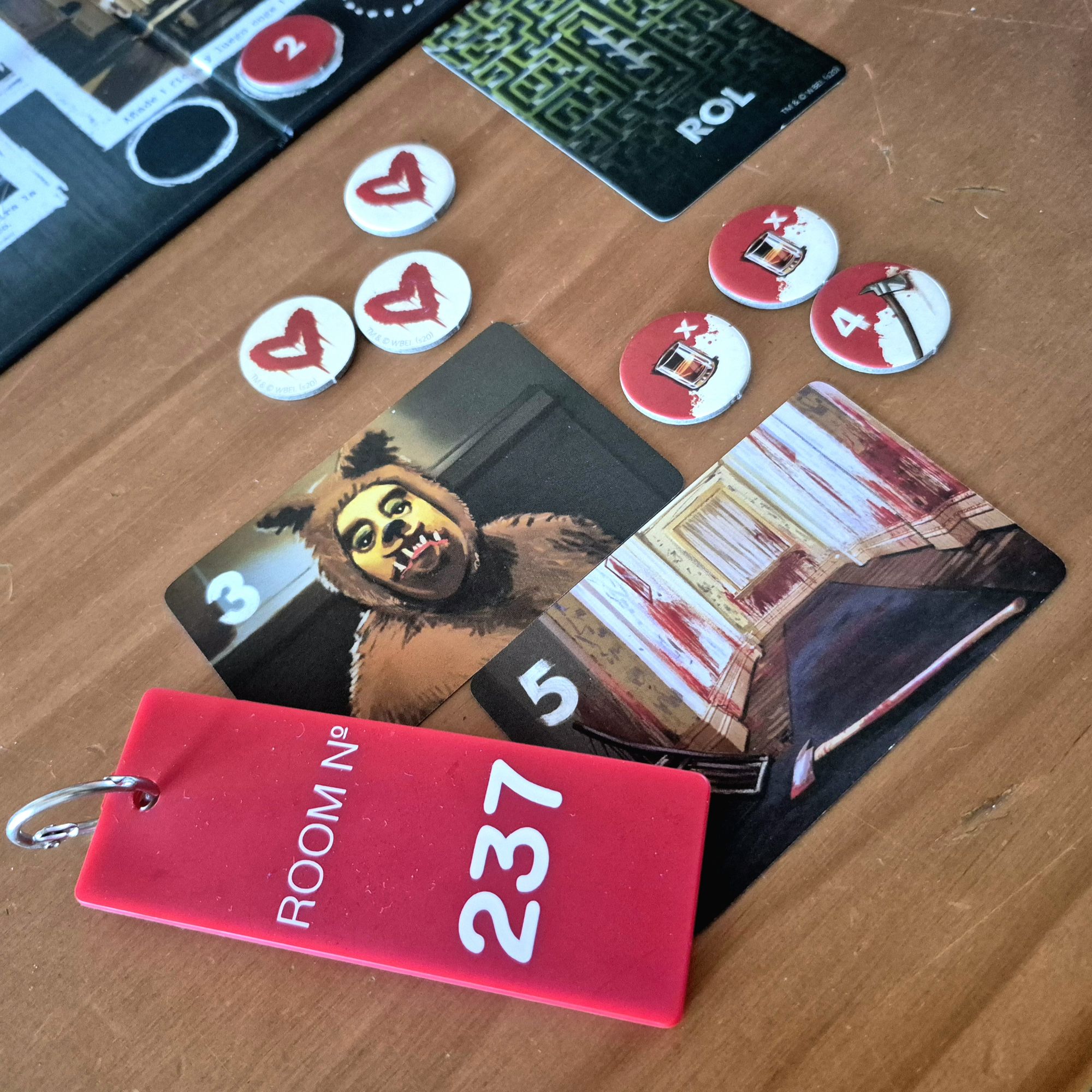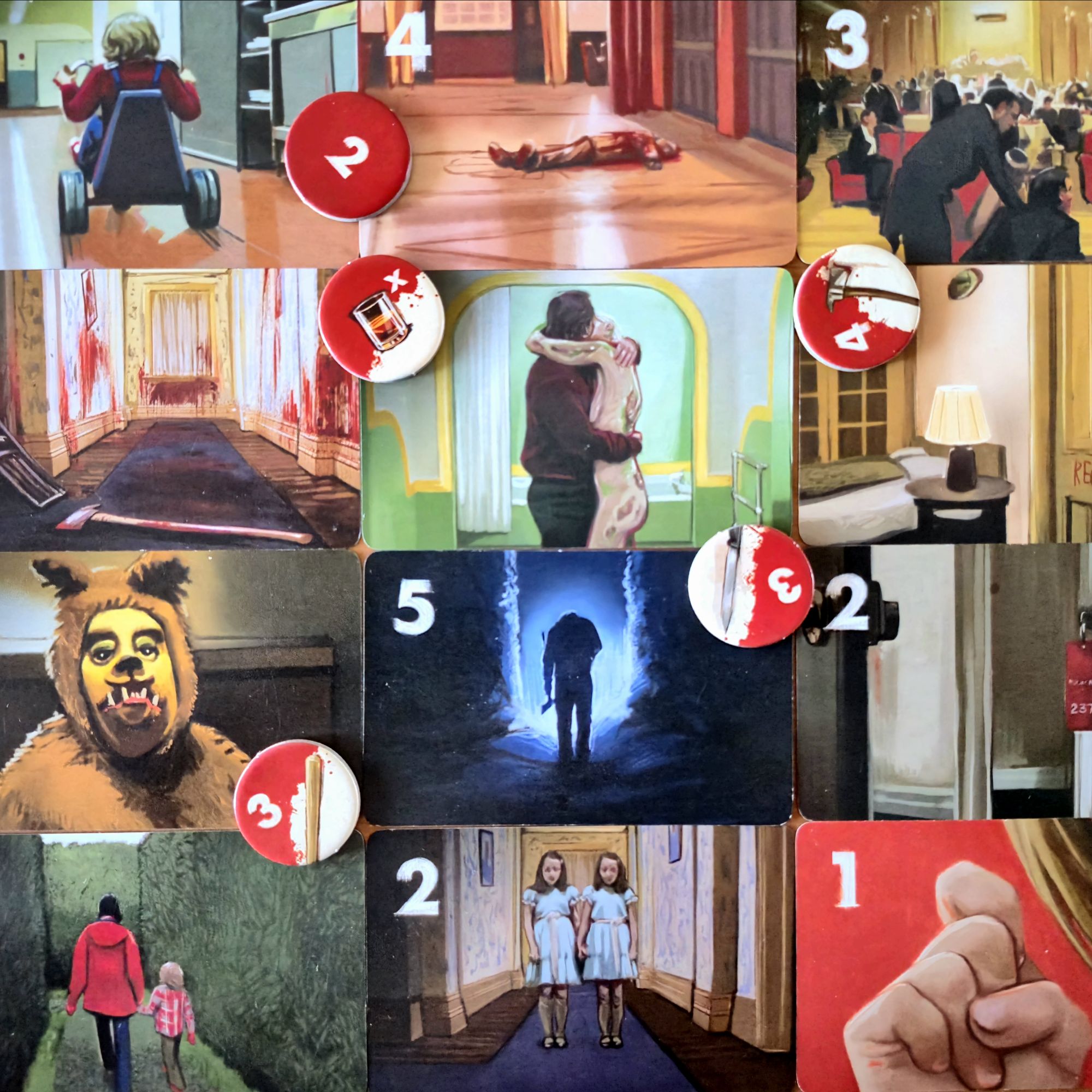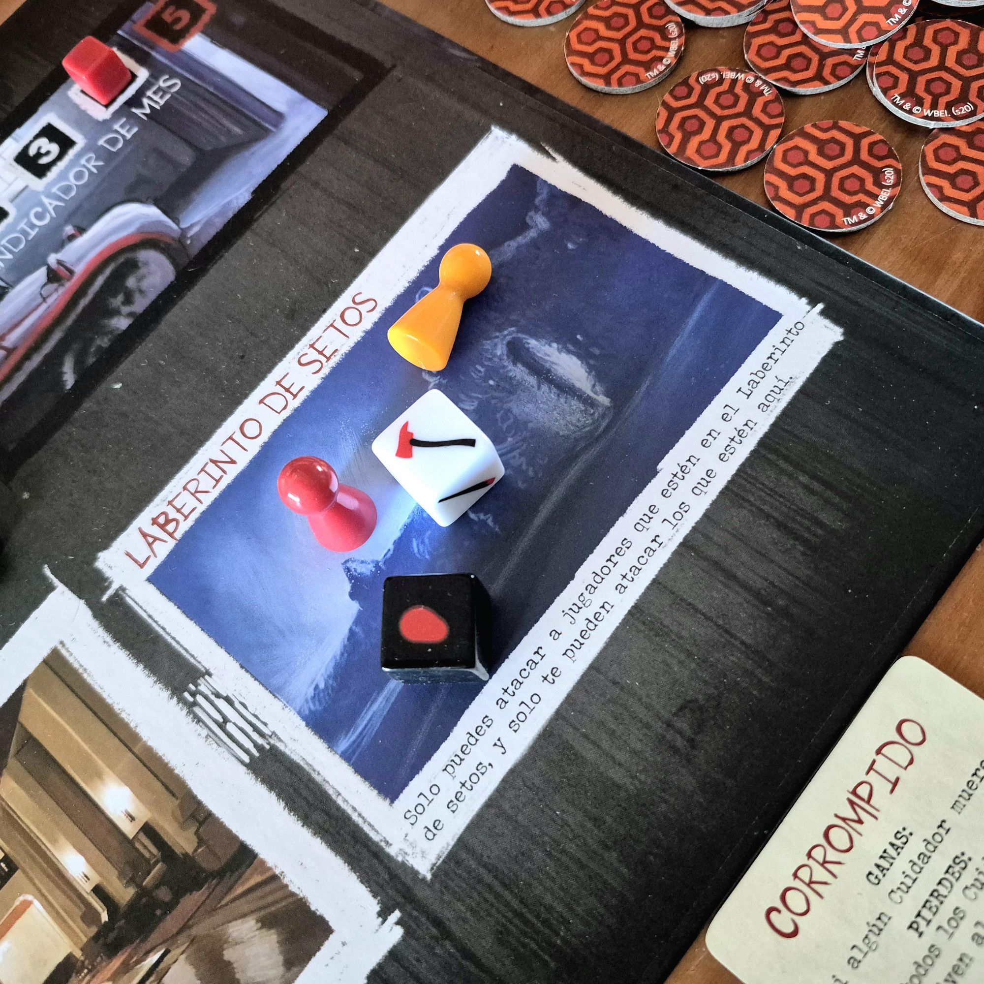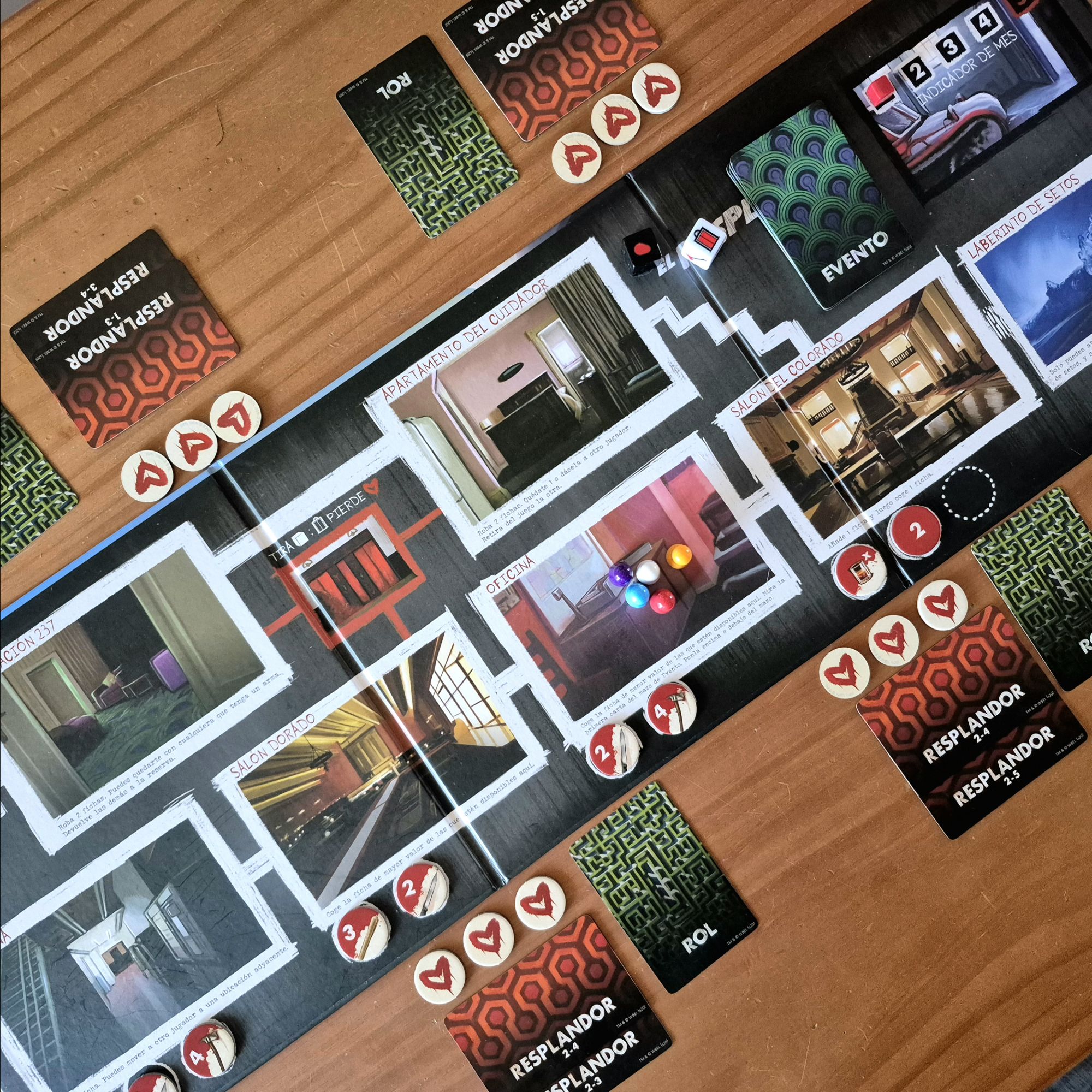 Empecemos por decir que no es el juego más ligado a su temática. El Resplandor está ahí, aunque bastante diluido. Su producción, lograda pero no descollante, hace un buen trabajo al meternos en el film de Kubrick y creo que es todo lo que necesita. Los juegos muy temáticos tienden a complejizarse, y no era necesario acá. El turno es simple: mover el peón y hacer lo que indica el casillero. La estructura se repliega para que el protagonismo lo tome la discusión, la charla.